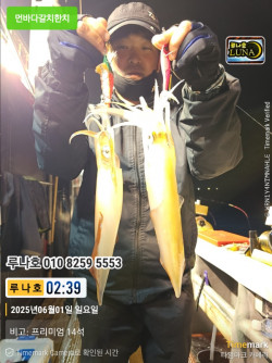 6월 15일 루나호 한치 다녀왔습니다.오늘은 원래 동쪽으로 방향을 잡았으나#카더라통신 의 꼬임에 넘어가 서쪽으로 가고있더군요....헐헐...외투장 43.5의 미사일급 사이즈도 보이고 한마리 한마리 준수한놈들이 올라와줘서손님분들과 상의후 말뚝 박았습니다.으쌰으쌰 손님분들과 열심히 해봤지만너무 예민하니 입질와도 모르실정도..중간에 우당탕 10~7수가 올라오는 준피딩도 두어번 왔었지만 피딩이 너무 짧네요 .결과는 대부분 30~10수 .. 초심자분 3마리하신분까지 참패를 하고왔습니다요.함께해주신분들 모두 고생많으셨습니다!오늘은 더 좋은 조황과 만족도을 위해 더 노력하는 루나호가 되겠습니다.월요일부터 자리가 있습니다.출조문의 010 8259 5553 === 통영 루나호 예약안내 ===예약문의 : 010-8259-5553선장(선주) : 010-4876-5557오시는길 : 통영시 산양읍 남평리 1277-5 또는 항진피싱 맞은편홈페이지 : http://luna.sunsang24.com//