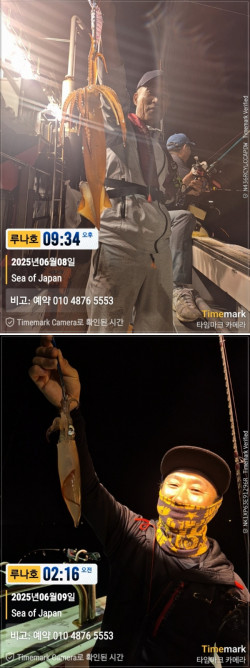 6월 8일 출조 한치&오징어 다녀왔습니다.멀리~ 다녀왔습니다~영해 한계선에 바짝 붙이려 조용히 대기하며몇일 무리했더니 목도 않좋고 해서 초반 수심공유를 그렇게 ~~부탁 드렸는데~~첫수부터~ 초반 그래도 곧 잘 나왔는데도~너무 않해주셔서 맨탈이 탈탈 나갓네요.ㅎㅎ소강와서 이동후 따박따박 나와주네요.통찜용 오징어 지원 해주신분들 감사합니다!선두권 60~40수 평균 20~30수 꽁지 8수 마감했습니다.수고들 많으셨습니다.10일 화요일 출항 확정!! 황제낚시 고고!대박치러~평일 출조 하고 싶습니다!한치+오징어 단독이나~~갈치 + 한치 + 오징어병행도 가능합니다.갈치가 꽤 보입니다!!널널하게 ~ 대포도 쏘며~재미 있게 ~ 노실분들 연락주세요!출조문의 010 8259 5553 === 통영 루나호 예약안내 ===예약문의 : 010-8259-5553선장(선주) : 010-4876-5557오시는길 : 경상남도 통영시 산양읍 물개길 85 홈페이지 : http://luna.sunsang24.com//