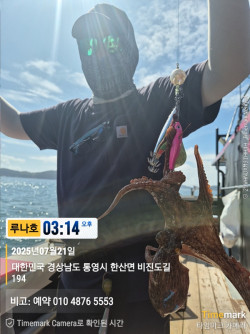 7월20일 한치 다녀왔습니다.나가는길 문어는 얼굴만~~^^아가야는 방생~한치는 영해한계선에 바짝붙어 스타트!출근해서 반피딩급으로 올라오드만오래가진 못했네요~쌍걸이도 꽤 자주 올라오고요~선두권 60~70수부터 ~ 낱마리까지~평균 20~40수 하셨습니다.좋은 기상속에~ 대박은 아니지만~바다를 즐겨주신분들 ~ 항상 고맙습니다.오늘도 정상 출항 합니다.2시까지 도착 하심 됩니다.문어+한치 13만/ 한치만 하시면10만 입니다.출조문의 010 8259 5553예약사이트 luna.sunsang24.com === 통영 루나호 예약안내 ===예약문의 : 010-8259-5553선장(선주) : 010-4876-5557오시는길 : 경상남도 통영시 산양읍 물개길 85 홈페이지 : http://luna.sunsang24.com//